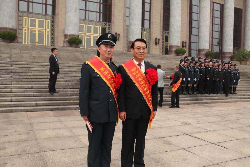 “樹慶,祝賀你,望你在今后的工作中加倍努力,珍惜榮譽(yù)、再創(chuàng)輝煌!”這是去年金秋時節(jié),在人民大會堂召開的第四屆全國先進(jìn)保安服務(wù)公司、先進(jìn)保安員表彰大會上,賈樹慶榮獲第四屆全國先進(jìn)保安員稱號后,總公司總經(jīng)理張濤看望他的一幕。多年來,由于他對保安事業(yè)執(zhí)著和追求,平凡中塑造自己,以身作則、恪盡職守,帶領(lǐng)隊(duì)員輔警抓獲搶劫等各類違法犯罪嫌疑人65名,為居民做好事8000余件,參與社區(qū)清理整頓2000多次、協(xié)助街道等部門處理各類不法事件10000多起。這些年來,先后獲得“首都五一勞動獎?wù)?/span>”、“全國五一勞動獎?wù)?/span>”、全國勞模等稱號。目前,賈樹慶已被北京市出席黨的十九大代表候選人初步人選考察對象。“五一”前夕,筆者對他采訪時,他笑著說:“社區(qū)就是我的家、把居民當(dāng)親人、把奉獻(xiàn)當(dāng)責(zé)任……”